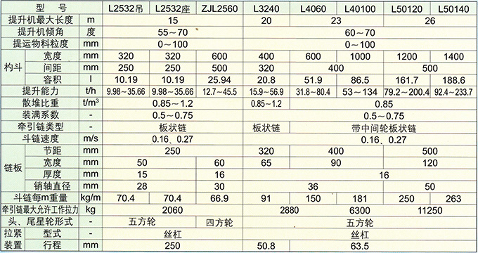 注:ZJL型為間斷斗子,即每兩個鏈節(jié)有一個斗子。和連接斗子(每一個鏈節(jié)有一個斗子)相比,不易將上個斗子的水滴到下個斗子中去,與L2532相比,提升能力相當。對于小型選煤廠,工藝流程比較簡單,撈出的物料當沒有篩機再次脫水時,選用更為合適。